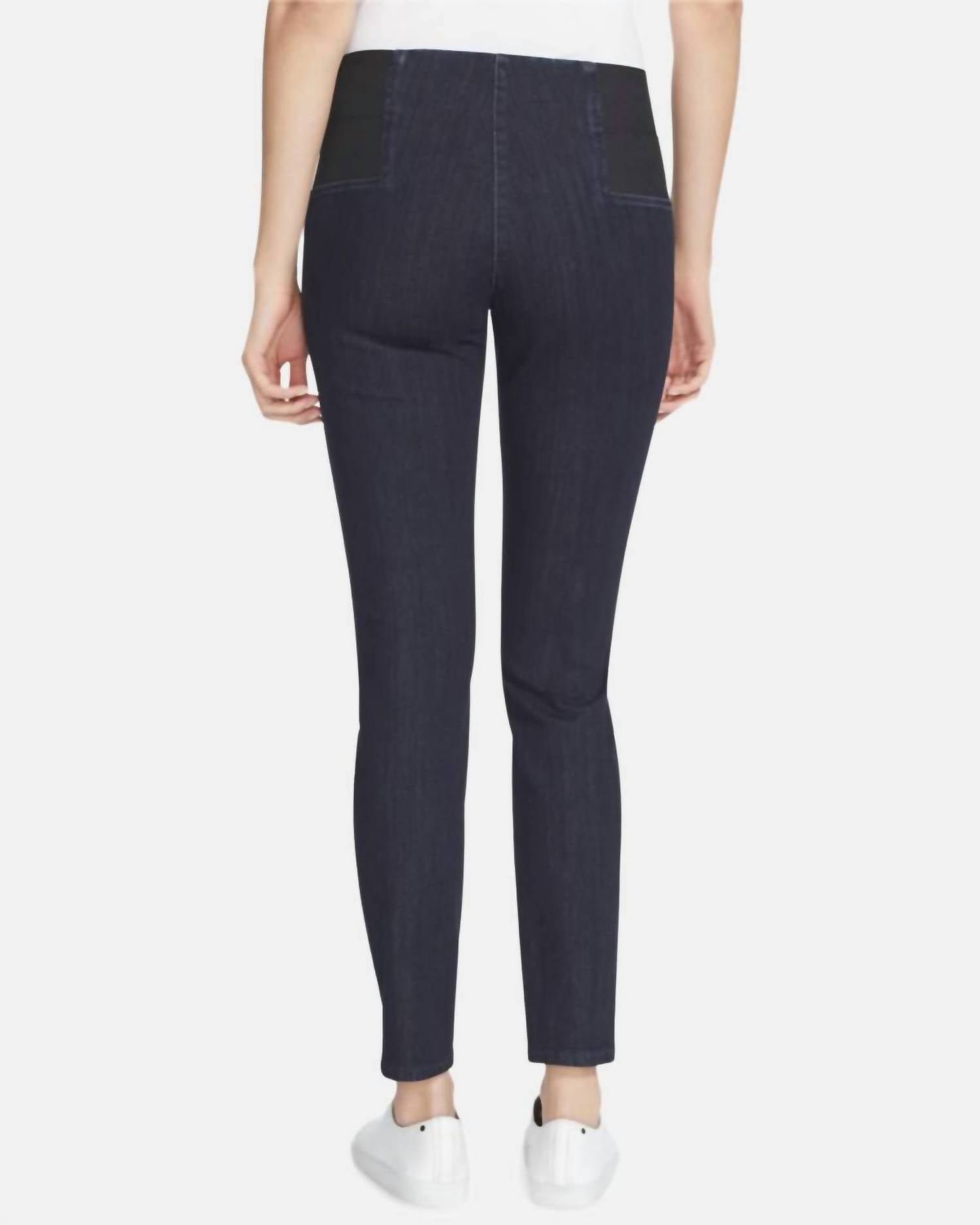 The perfect skinny jeans to wear with your favorite boots this season! Introducing the Lafayette 148 Nolita Skinny Jeans, a chic choice for any wardrobe in an indigo hue. Featuring a skinny-leg silhouette with a high rise of 12 inches and a regular inseam of 29 inches, these jeans offer a relaxed fit enhanced by elasticized side panels at the waist. Made from a premium cotton blend (80% cotton, 13% polyester, 7% spandex) with tonal stitching for a textured finish, they promise comfort and style. Closure: Pull-on style with machine wash or dry clean care options, perfect for fall travel and Thanksgiving gatherings. Model is wearing a size small (5'10" height, 33.5" bust, 23.5" waist, 34.5" hips). Imported.