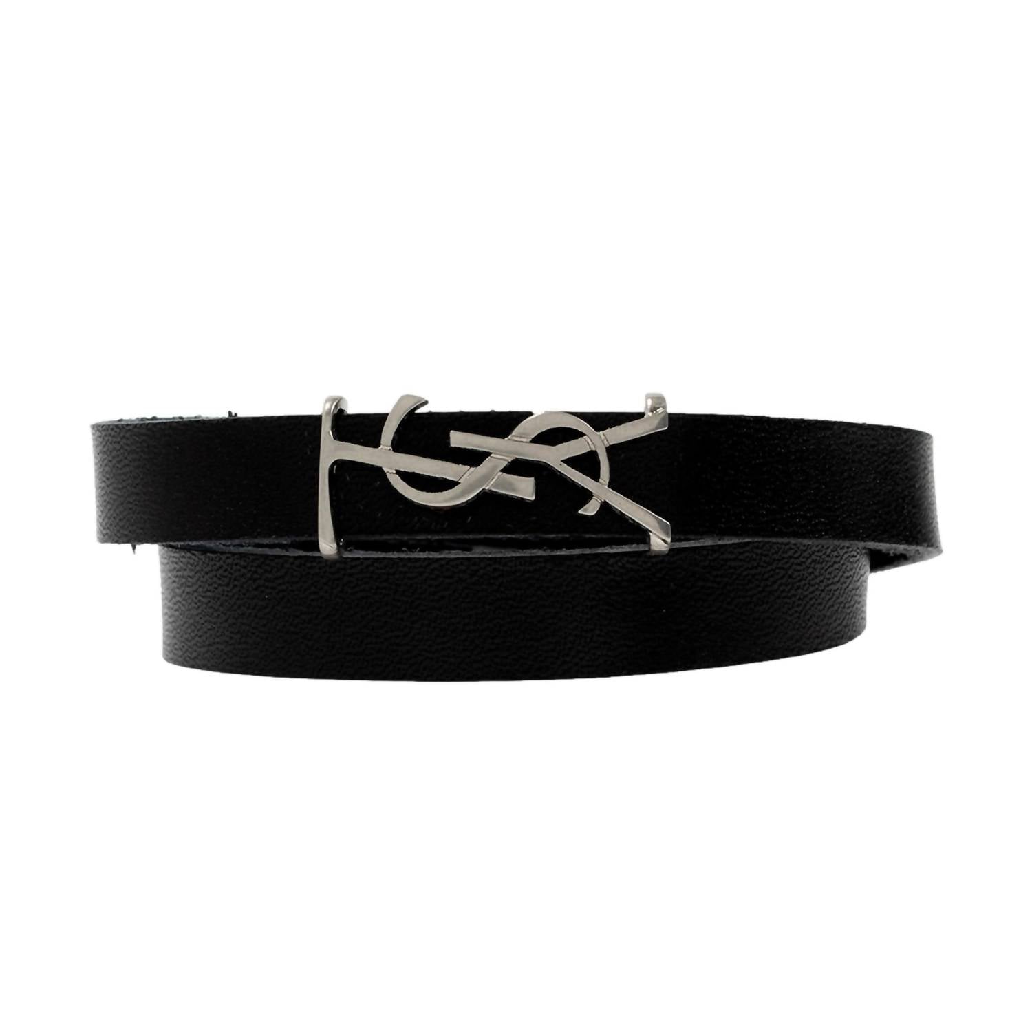 This stand-out bracelet is good enough to wear on its own, or stacked with your favorites. Embrace timeless elegance with the Women's Monogram Leather Bracelet by Saint Laurent, featuring the iconic silver YSL logo. Crafted in Italy from smooth black leather, this bracelet exudes sophistication with its silver-tone hardware. It offers a sleek fit thanks to its magnetic box clasp closure. The authenticity cards and box are included, ensuring a luxurious accessory experience.