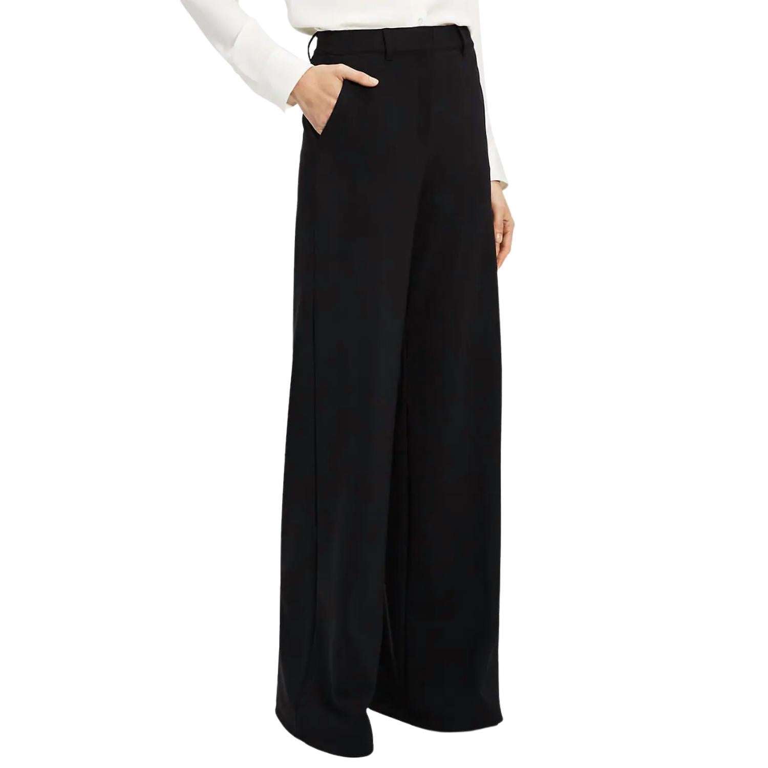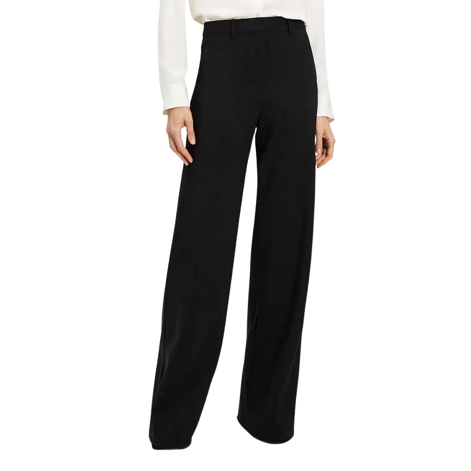 Designed with a crisp wide-leg cut these pants are an effortless approach to timeless tailoring! Featuring a high rise, a wrinkle and abrasion-resistant Precision Ponte knit that's UV protective, and a honeycomb structure that allows ample airflow for ultimate comfort and elevated chic style. Theory Terena Precision Ponte High Waist Trousers Poly, Elastane in Black Wide Leg Pants High Rise Flat Front Belt Loops Quarter Top Pockets Besom Back Pocket Zip Fly, Hook and Bar Closure Wrinkle Resistant Moisture Wicking UV Protective Four Way Stretch Breathable 11.5" Rise 34.7" Inseam 25.2" Leg Opening Machine Wash Cold, Lay Flat to Dry