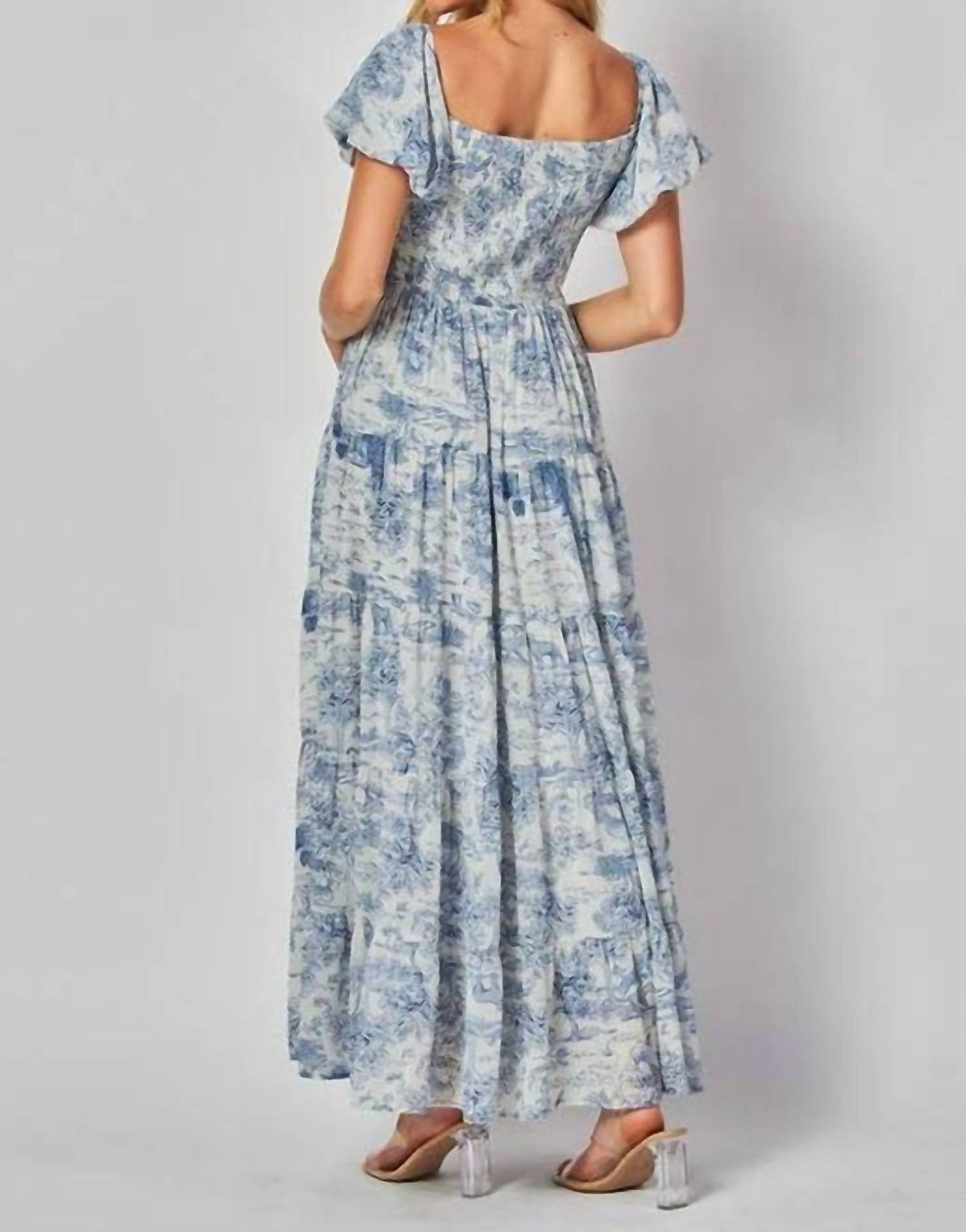 A maxi dress that is just as cute as it is comfortable. Introducing the Toile Maxi Dress by BIG HIT FASHION, a stunning choice in Vintage Blue with a paisley pattern for a touch of elegance. This women’s dress features short bubble sleeves and a tiered A-line silhouette, combined with smocking detail that enhances its charming appearance. Crafted entirely from polyester for a durable and comfortable fit, this maxi is designed with a squareneck and offers a pull-on closure for effortless wear. Perfect for those seeking classic style, this dress is a versatile addition to any wardrobe.