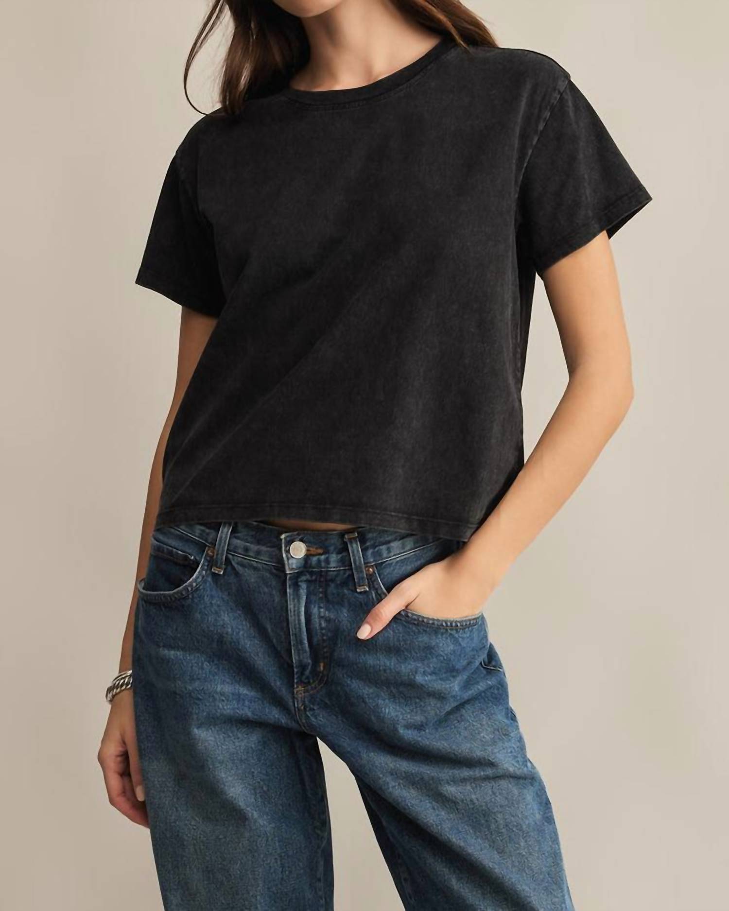 The short sleeve tee you'll want in every color. Add a touch of quirkiness to your wardrobe with the Z Supply Go To Washed Tee in classic black. This women's short-sleeve tee offers a boxy fit and a solid pattern, making it a minimalist staple perfect for spring vacations. Crafted from comfortable cotton, it features a crewneck design and a convenient pull-on closure. For easy maintenance, machine wash and line dry this versatile tee.