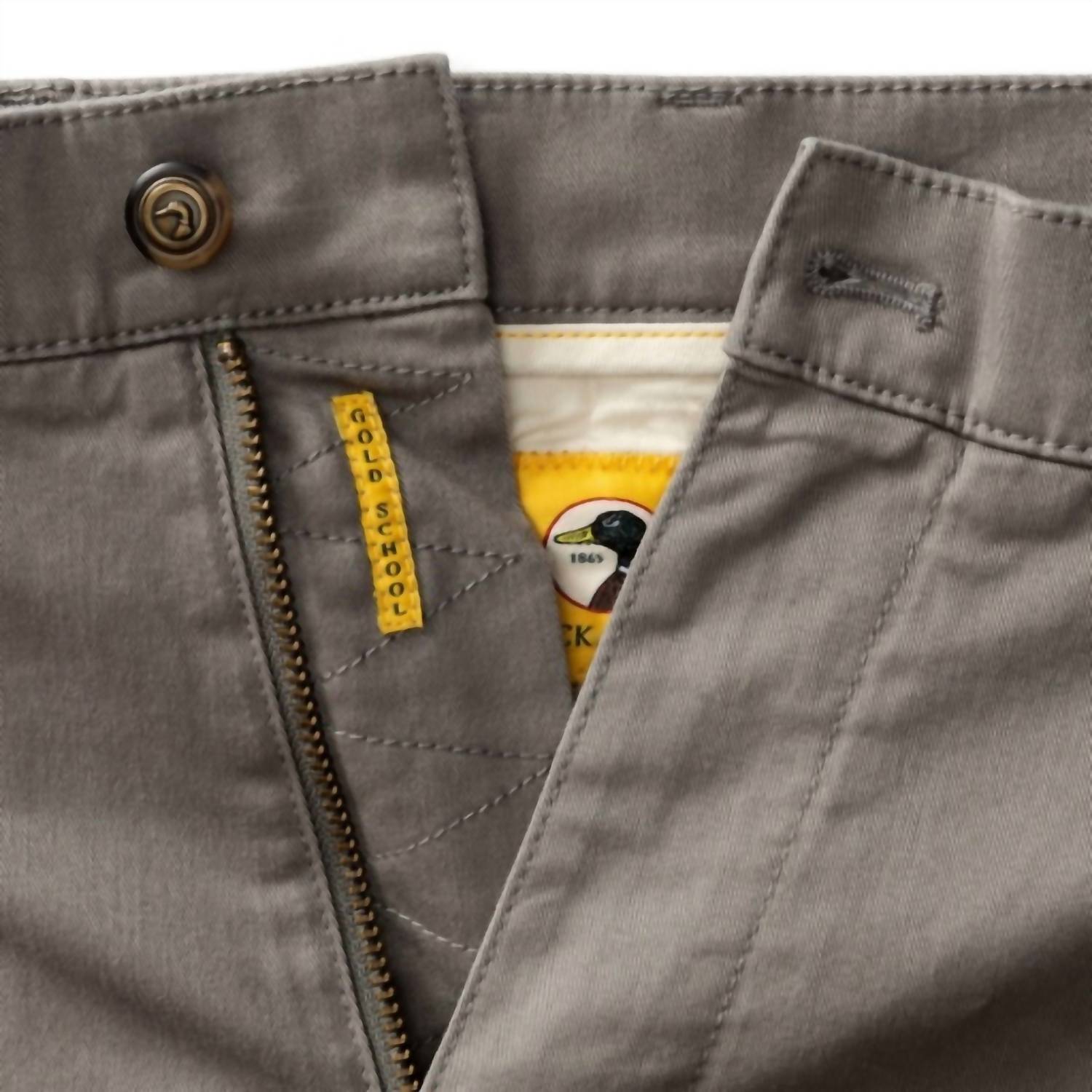 Elevate your wardrobe with the Gold School Chino Pants by DUCK HEAD, expertly crafted for a refined yet relaxed style. These brushed nickel chinos feature a straight leg design with a 16 ¼” leg opening based on size 32/32, providing a comfortable fit. The pants are composed of 97% cotton and 3% stretch, showcasing enzyme-washed 7.5 oz. twill fabric for enhanced softness. Equipped with a button closure, these chinos feature deep 13” front pockets and an industrial-grade antique brass YKK zipper for a touch of durability. Care is a breeze with machine wash and tumble dry guidelines.