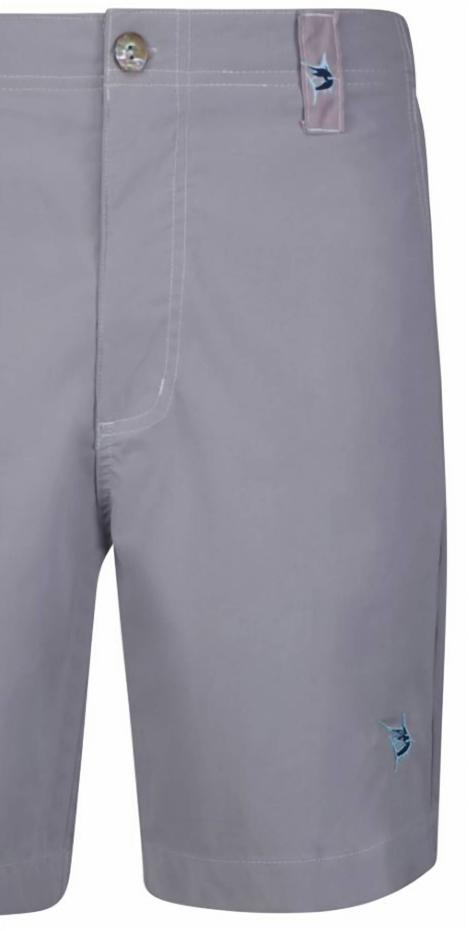 Introducing the Men's Starboard Shorts by White Water Life, the perfect choice for summer adventures in classic grey. These solid-patterned hybrids feature an 8-inch inseam and stylish belt loops with icon logo and left leg embroidery for added flair. Made for game day and ideal for any activity requiring comfort, these shorts offer a lightweight feel with just the right amount of stretch. Closure: Button closure.