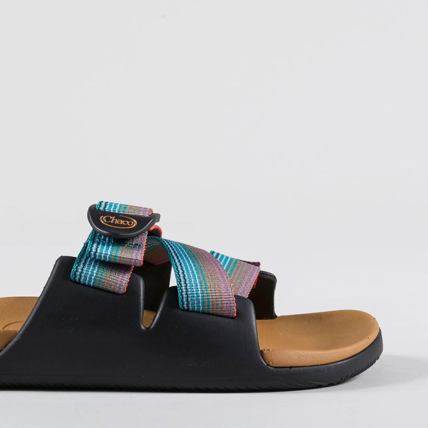 Step into comfort with Chaco's Men's Chillos Slide Sandal in Rising Teal, featuring a nylon webbing upper and adjustable buckle for a secure fit. These slides boast a shock-absorbent LUVSEAT EVA footbed, providing unparalleled comfort with every step. The high-abrasion outsole ensures durability wherever you wander. Embossed logos on the footbed and buckle add a subtle touch of style to these medium-width sandals, perfect for the modern man.