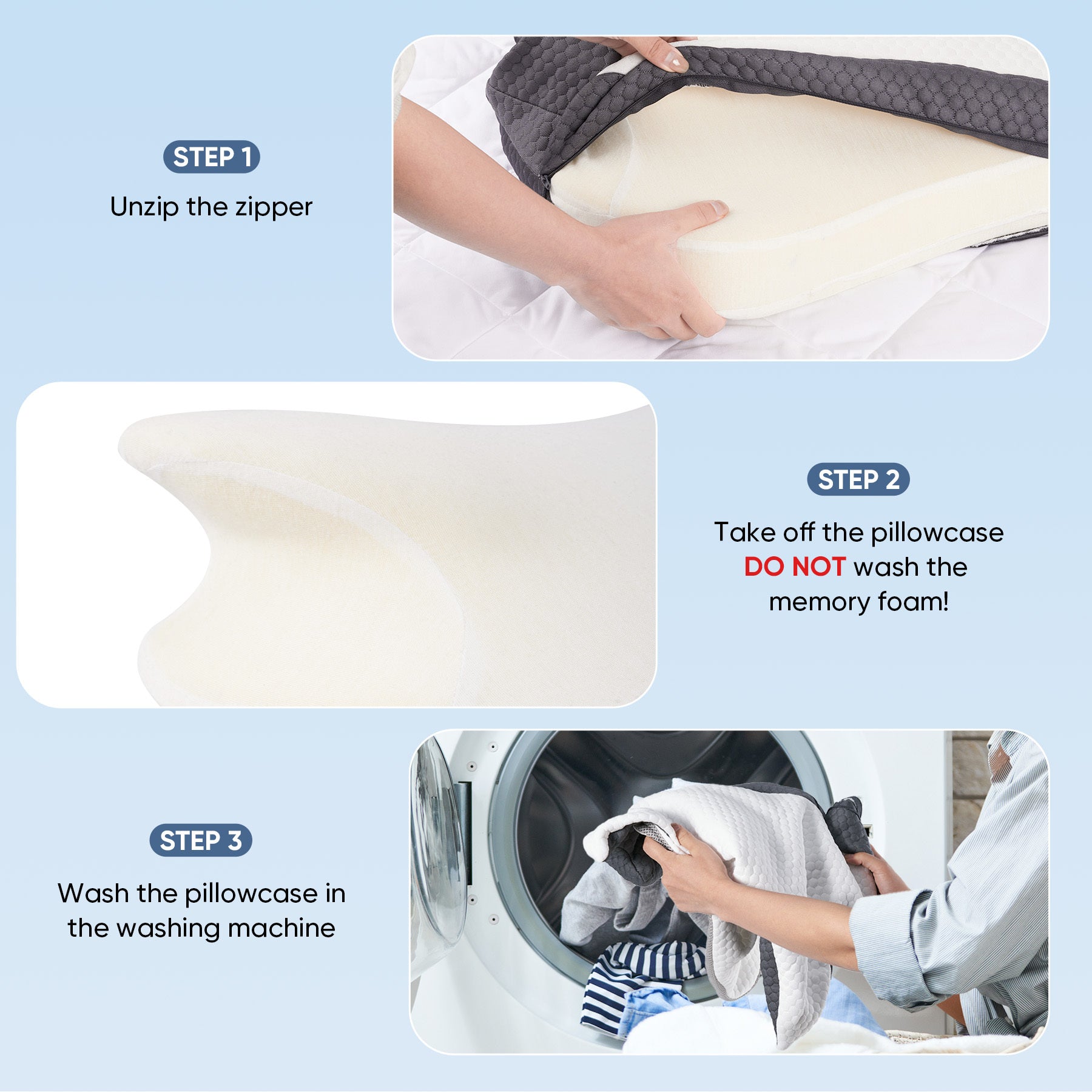 The removable cover features a soft 100g inner knit fabric for skin-friendly comfort and a durable 280g outer air-layer fabric for enhanced breathability and stretch resistance. Easily removable and washable to keep your pillow fresh and hygienic trip after trip.