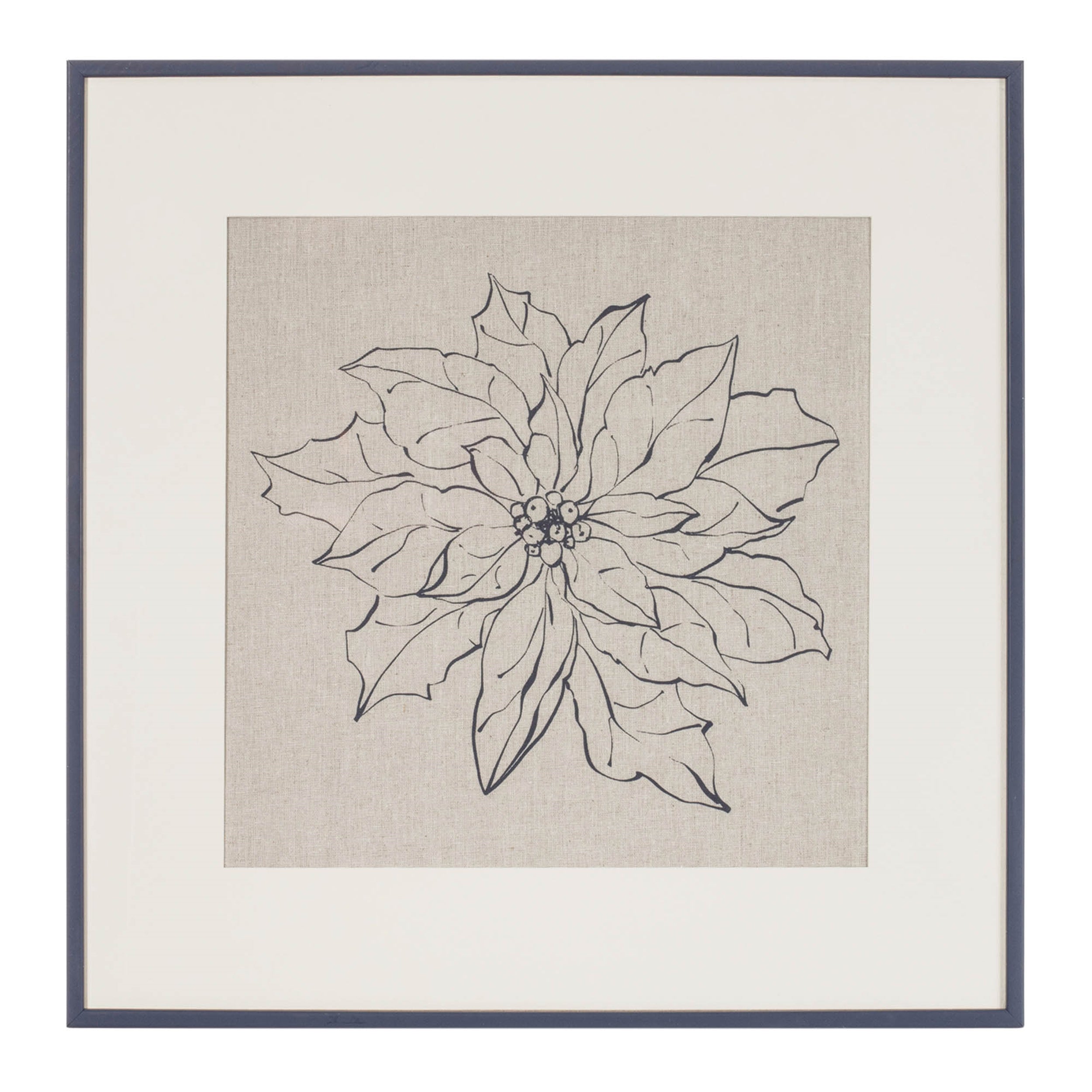 • Bring a touch of modern elegance to your holiday decor with the Framed Poinsettia Print Under Glass. Featuring a delicate sketch of a poinsettia in wintry white and navy blue tones, this piece exudes a contemporary yet classic charm. The artwork is framed in deep navy blue under glass, complemented by a crisp white matte for an added layer of sophistication. Display this stunning piece in your living room or entryway to elevate your seasonal displays, or gift it to a loved one for a timeless holiday accent.