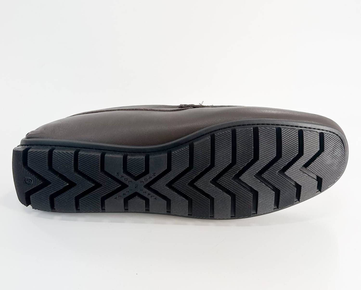 Introducing the Men's Xavier Driver Moccasin Shoes by Bruno Magli, a sophisticated choice for any evening event. Crafted in Italy, these loafers feature a luxurious suede and nappa leather upper, complemented by a classic slip-on style and signature horse bit ornament. The interior boasts a leather lining for comfort, while the durable rubber sole ensures a secure step. Perfect for spring workwear dressing, these dark brown round-toe moccasins effortlessly blend style and practicality.