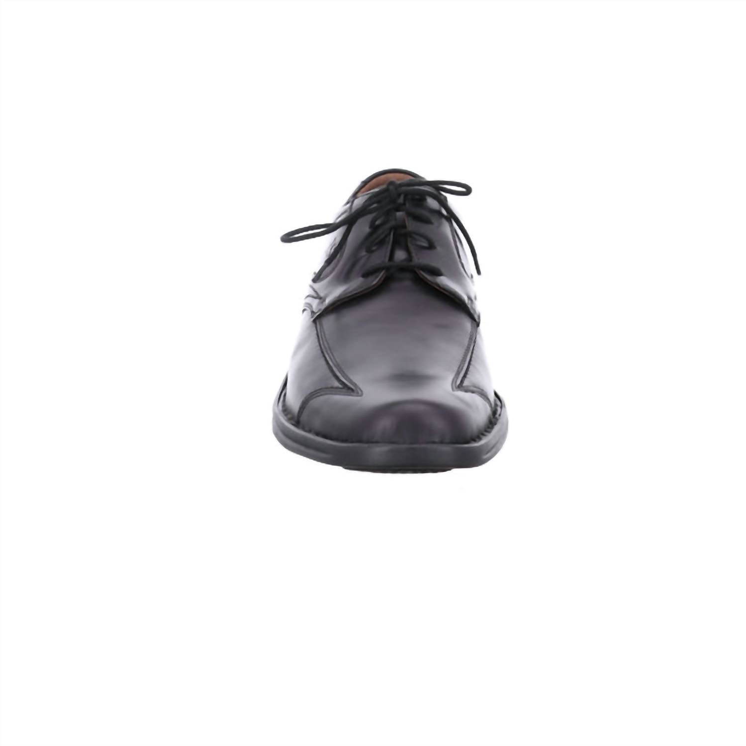 Step into classic sophistication with the Men's Douglas 05 Dress Shoes by Josef Seibel, expertly crafted in a sleek Black Dream hue. These oxfords feature supple full-grain leather uppers and a lace-up design ensuring a snug, adjustable fit without any break-in period needed. The hand-sewn construction adds flexibility and durability, complemented by a breathable leather lining and a removable, shock-absorbent insole for ultimate comfort. Made from sturdy materials, these shoes boast a burnished textured finish outsole ideal for formal settings. Imported craftsmanship assures quality, making these shoes a standout addition to any wardrobe.