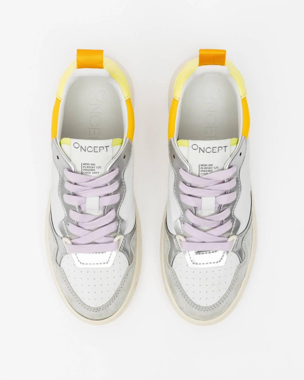 Introducing the Men's Phoenix Sneaker by Oncept, a stylish update on retro '90s design in Cool Grey. Featuring luxurious butter leather and organic cotton laces, this sneaker offers both comfort and sophistication. The re-speckled soles add a unique touch to the flat heel design, perfect for a holiday party or casual outing. Ideal for men who appreciate medium-width footwear with a round toe, this shoe seamlessly combines style and functionality.