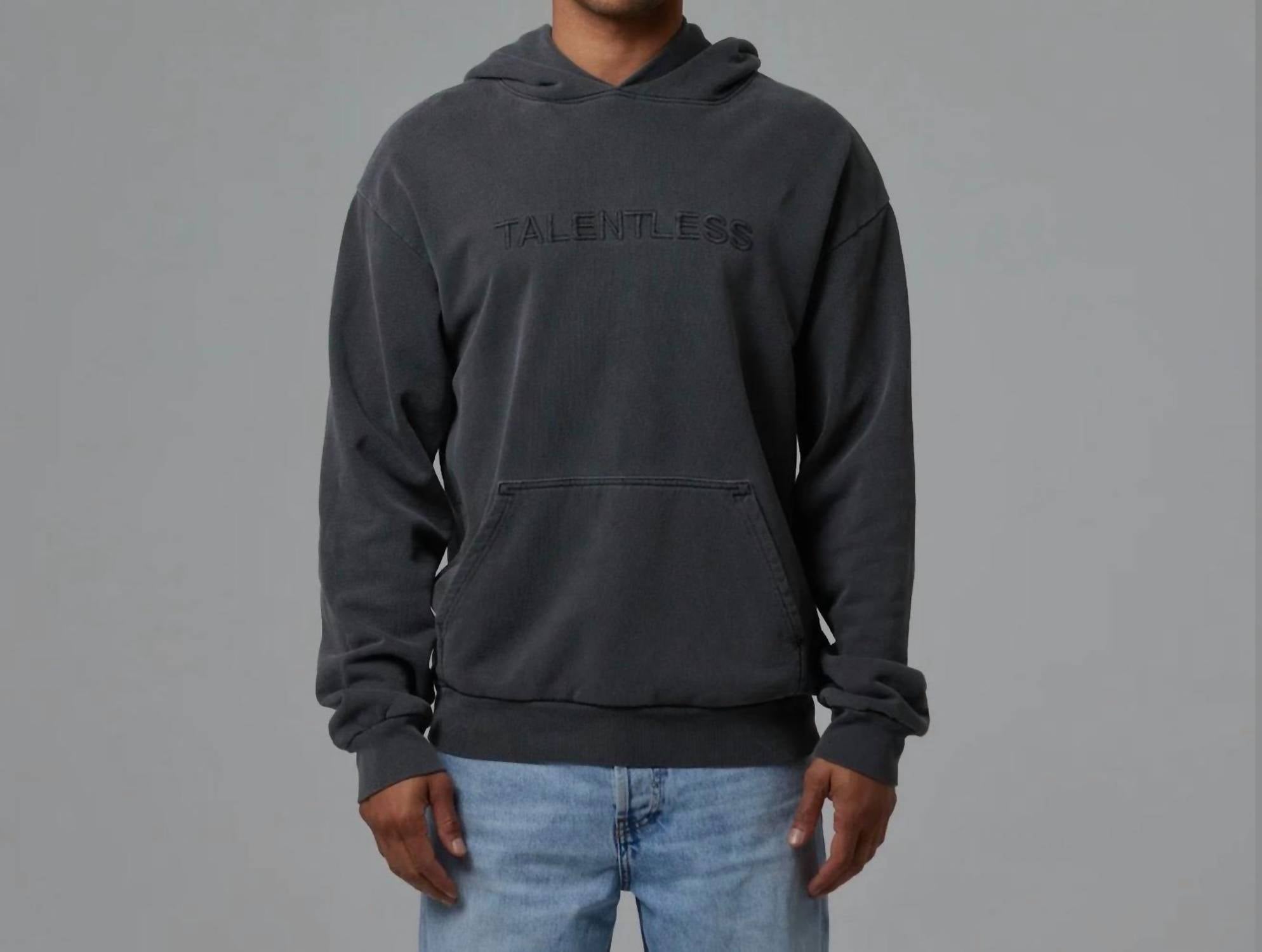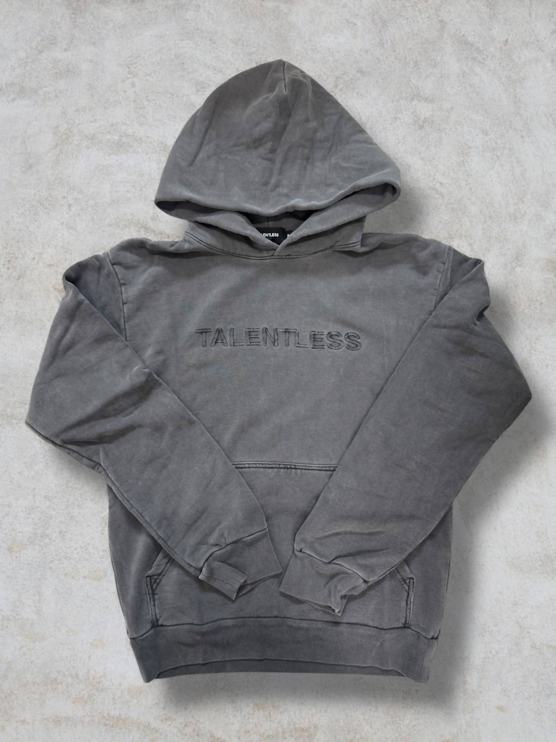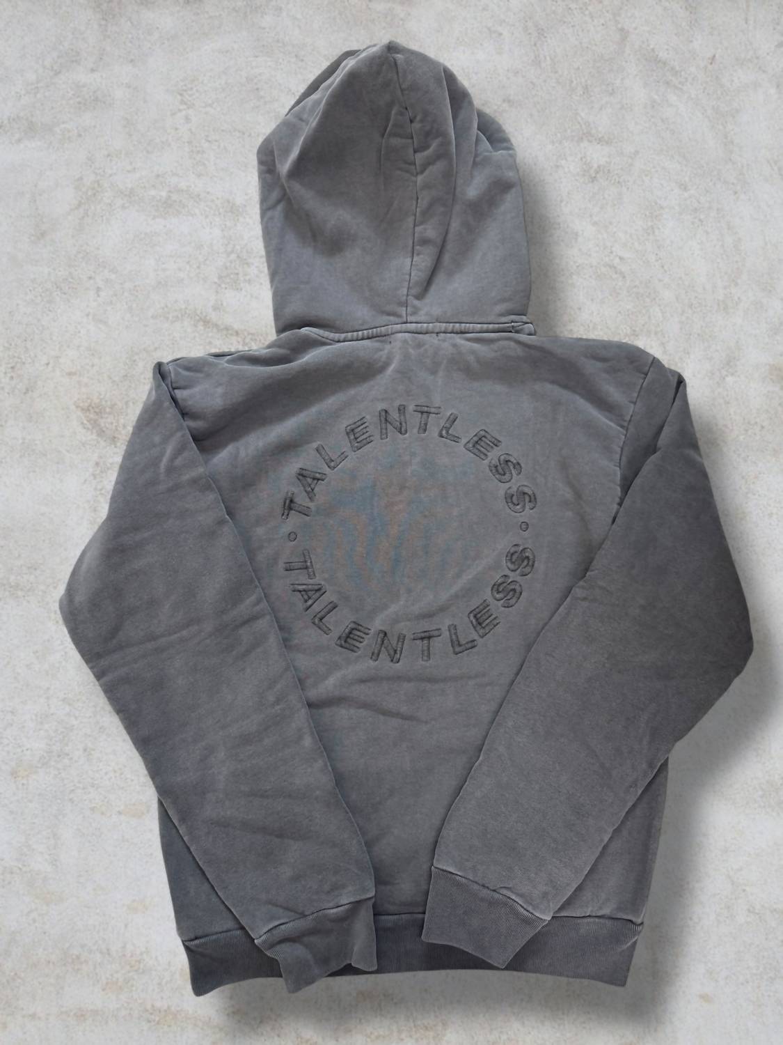 Introducing the Men's Circle Logo Embroidered Hoodie by Talentless, a stylish streetwear piece in steel grey that blends comfort and durability. Featuring long sleeves and a classic pull-on hooded design, this heavyweight hoodie is crafted from 100% cotton fleece with 500 GSM. Designed with stitched embroidered logos on the front and back, reinforced double-stitched seams, and sturdy metal grommets, it's perfect for staying cozy without overheating. Care: Machine wash, tumble dry.