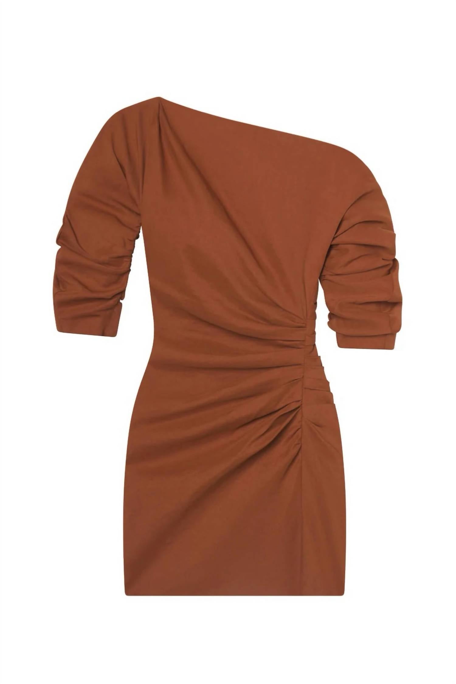 The A.L.C. Sona Linen Mini Dress in Red Rock is a stunning choice for cocktail parties with its minimalist, sheath silhouette. Crafted from a blend of 53% Linen, 44% Viscose, and 3% Elastane, this elegant piece features an off-the-shoulder neckline and elbow sleeves. The dress measures a length of 32.5 inches and secures with a zip closure. To maintain its pristine look, please dry clean this solid, unlined garment.