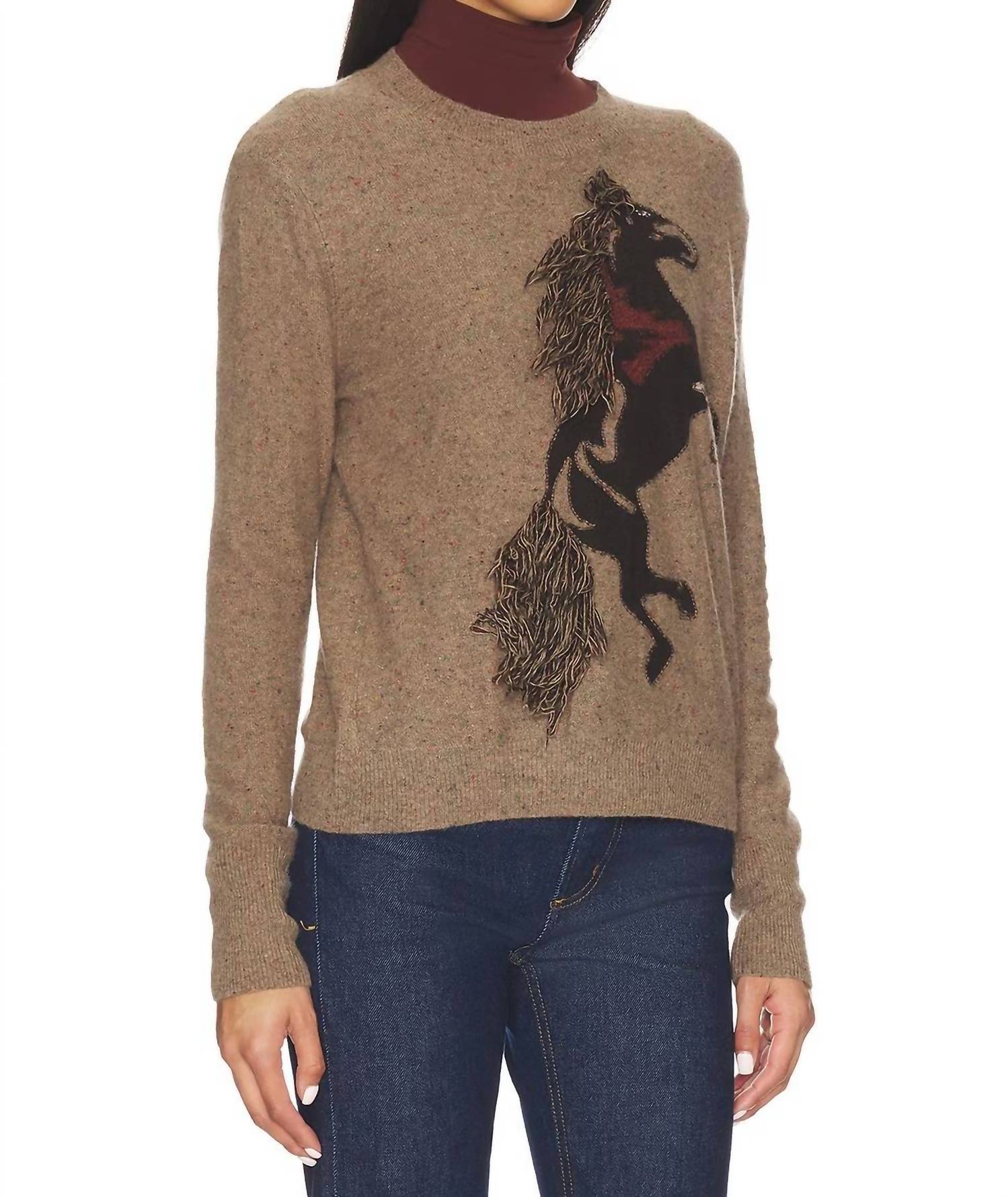 Autumn Cashmere - Intarsia Horse Crew Fringe Sweater