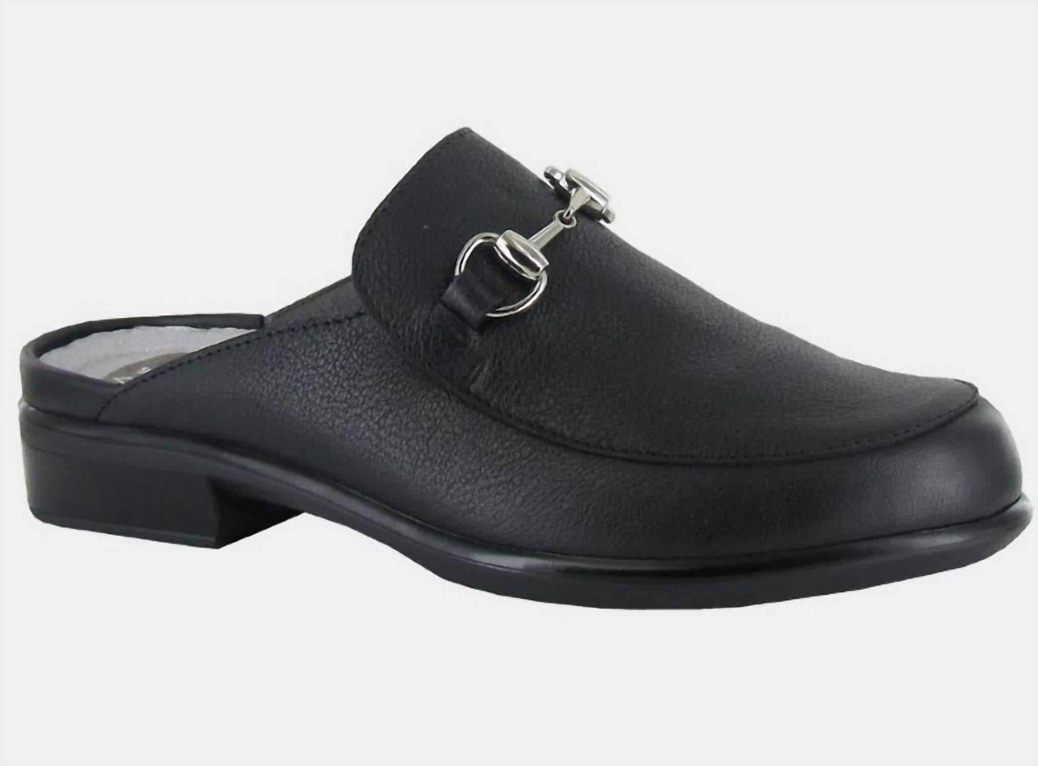 NAOT introduces the Women's Halny Mule Shoes, a chic addition to your spring wardrobe perfect for dinner parties. In a soft black hue, these mules feature an almond toe and a stylish monochrome design. The comfortable block heel has a low height, measuring between 1 1/4" to 2", making them ideal for all-day wear. Elevate your footwear collection with these elegant mules, crafted with precision to enhance any outfit.