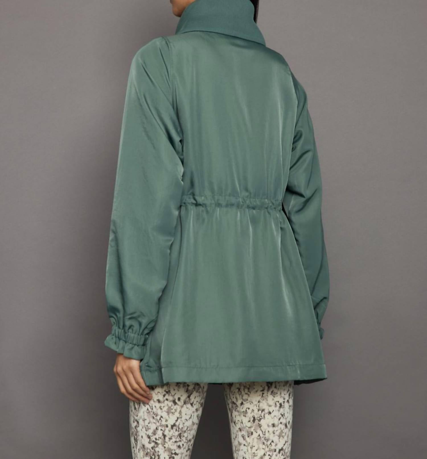 Embrace functionality and style with the Allison Jacket by VARLEY, a minimalist utility jacket in dark forest. This long sleeve jacket features a practical zip closure and is crafted from durable 100% Nylon, making it perfect for travel and outdoor adventures. Designed with a roomy 29.9-inch length, it includes secure pockets and an adjustable waistline, ensuring a tailored fit that's both comfortable and flattering. Care for this solid-patterned piece is simple with machine wash and line dry instructions.