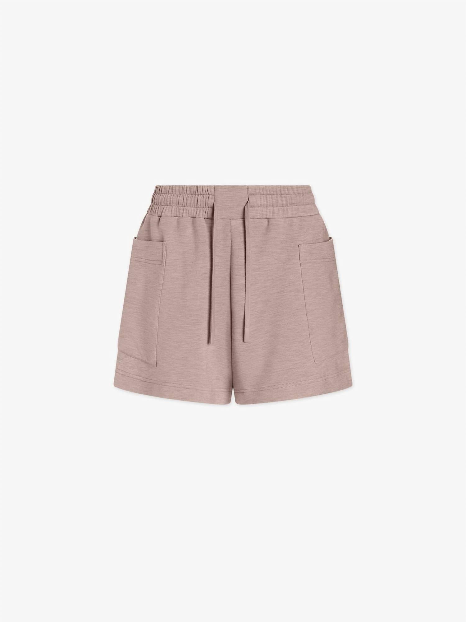 Meet the Isabella Mid Rise Short by VARLEY, a stylish choice in Taupe Marl designed for casual elegance. These women's shorts feature statement patch pockets and an elasticated mid-rise waist for ultimate comfort. Material: Viscose Blend for unrivaled softness and breathability. Closure: Tie closure. Care: Machine wash, lay flat to dry. With a 4-inch inseam, these shorts are perfect for summer and preppy occasions, even weddings.