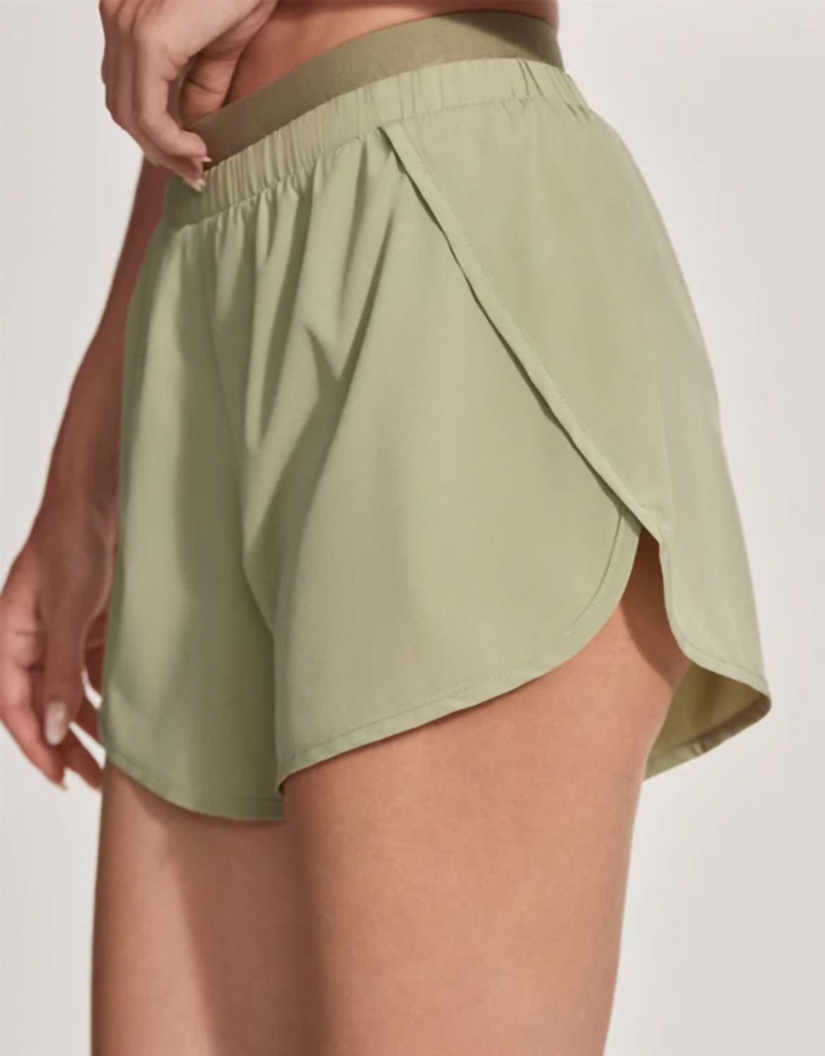 Elevate your workout wardrobe with the Rae Mid-rise Running Shorts by VARLEY, available in soothing tea green. Crafted from lightweight, breathable 86% Polyester, 14% Elastane, these athletic shorts are designed to keep you cool and comfortable during your summer workouts. Featuring a pull-on closure and an inseam of 4 inches, they provide a seamless fit ideal for fitness activities. Care for these shorts is simple with machine wash and line dry instructions, making them a stylishly practical choice for athleisure enthusiasts.