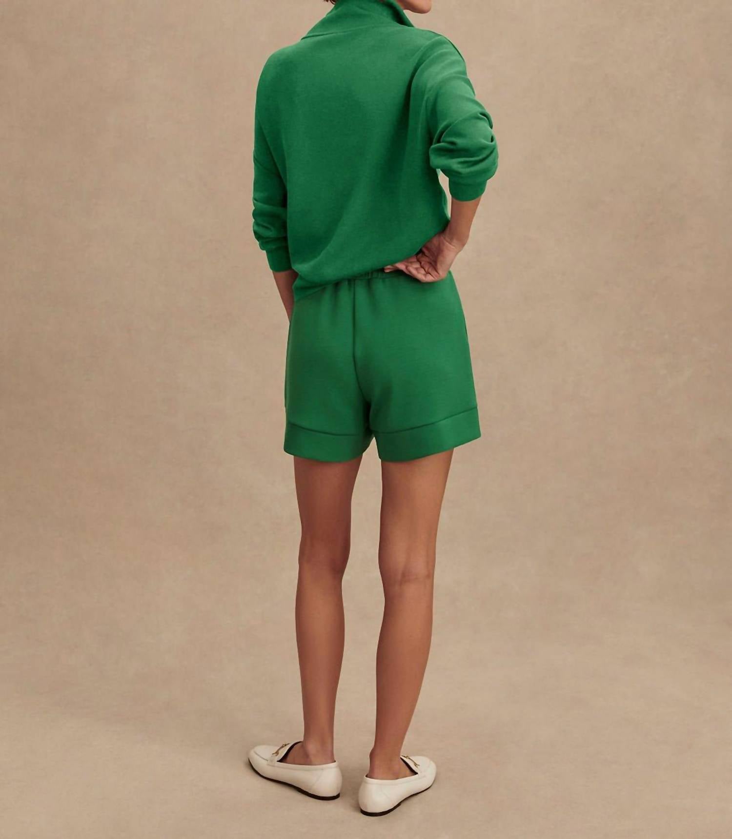 Experience unparalleled comfort with the Women's Atrium High Rise Short by VARLEY, crafted in their exclusive DoubleSoft® fabric. These high-rise A-line shorts feature a chic dipped drawcord and deep hem panel, perfect for minimalist spring and summer styles. Made from a viscose blend of 72% Viscose, 23% Polyester, and 5% Elastane, they ensure a flattering fit and easy movement. Care is simple with machine wash cool; for best results, wash inside out, dry flat, and use a cool iron if needed. Size S offers a front rise of 13", a waist of 13.6", and an inseam of 4.5", with no pockets and a tie closure.