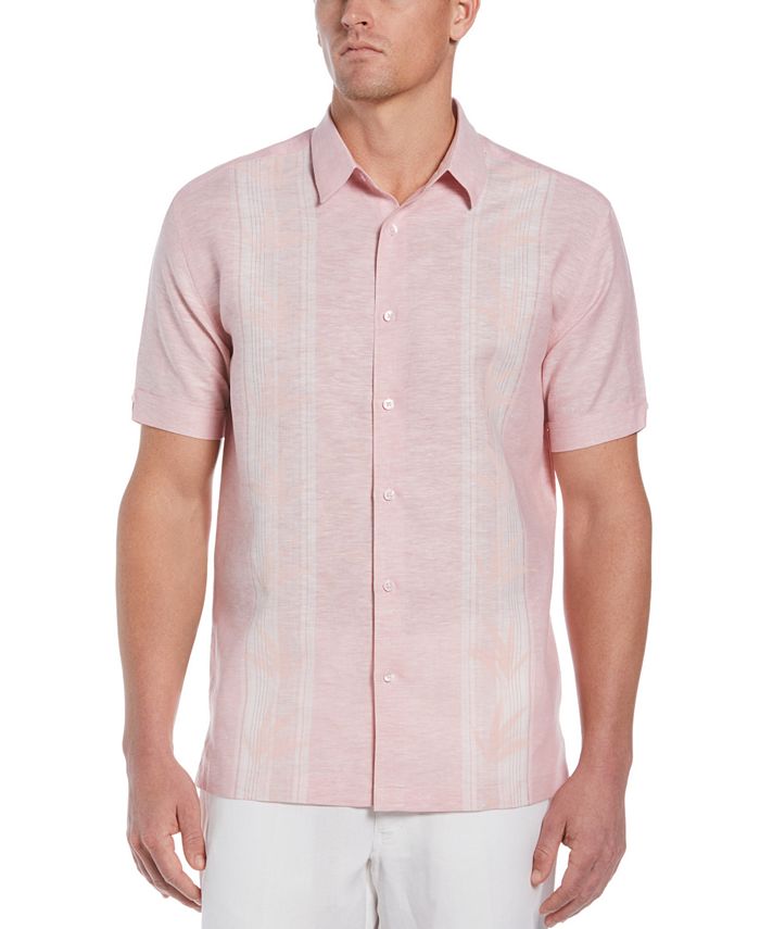 Yarn dyed panels combining a dynamic leaf print with vertical stripes bring a fresh twist to this short sleeve button-up from Cubavera. | Point collar| Button-front closure| Linen/cotton| Machine washable| Imported