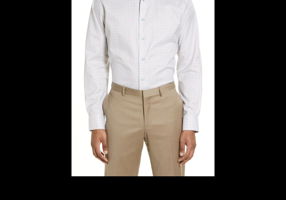 The David Donahue Trim Fit Dress Shirt is a stylish and sophisticated addition to any wardrobe, crafted from high-quality yarn-dyed cotton that offers a crisp, polished look. The unique plaid pattern in white and dune colors provides a unique touch to the classic dress shirt design. Tailored in a trim fit, this shirt is designed to create a sharp silhouette while offering comfort and flexibility. It features a smart French placket for a clean and streamlined appearance, making it perfect for both formal and casual occasions. The point collar enhances its professionalism, while rounded, adjustable button cuffs add convenience and a customizable fit. Easy to maintain with machine wash and line dry care instructions, this dress shirt ensures you always look your best with minimal effort.