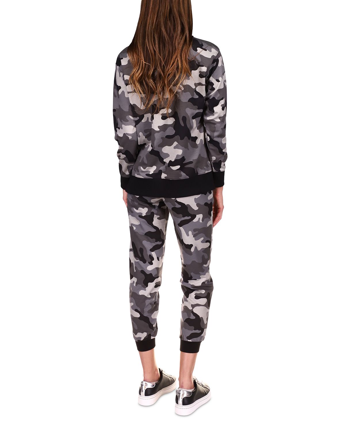 Michael Kors' cropped camo-print pull-on pants are easy to wear| cozy and cute all in one!| Approx. inseam; 28-1/2| Front rise; approx. 11-5/8; back rise; 17-1/4| Pull-on styling| Slit pockets at hips| Cotton/polyester/elastane