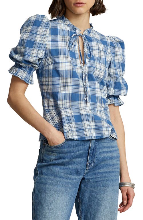 Polo Ralph Lauren Women's Blue/White Cassie Peplum Top Size 12