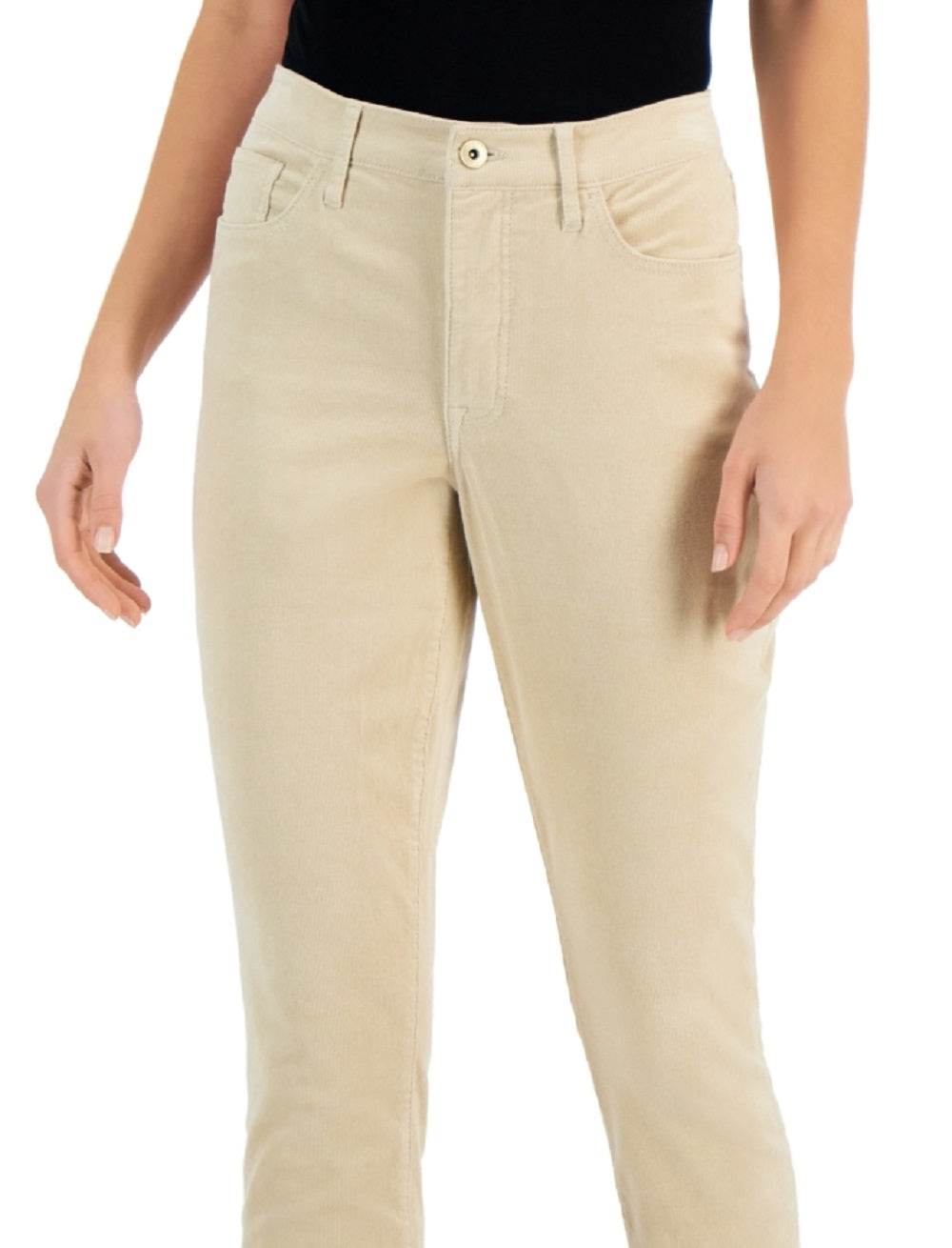 Tommy Hilfiger combines the classic look of corduroy with the casual vibe of jeans on these 5-pocket ankle pants.| Pockets at front; patch pockets at back | Front rise; approx. 9-3/4; back rise; approx. 15-1/4| Zipper and button closure at front; belt loops| Cotton/spandex| Dry clean| Imported