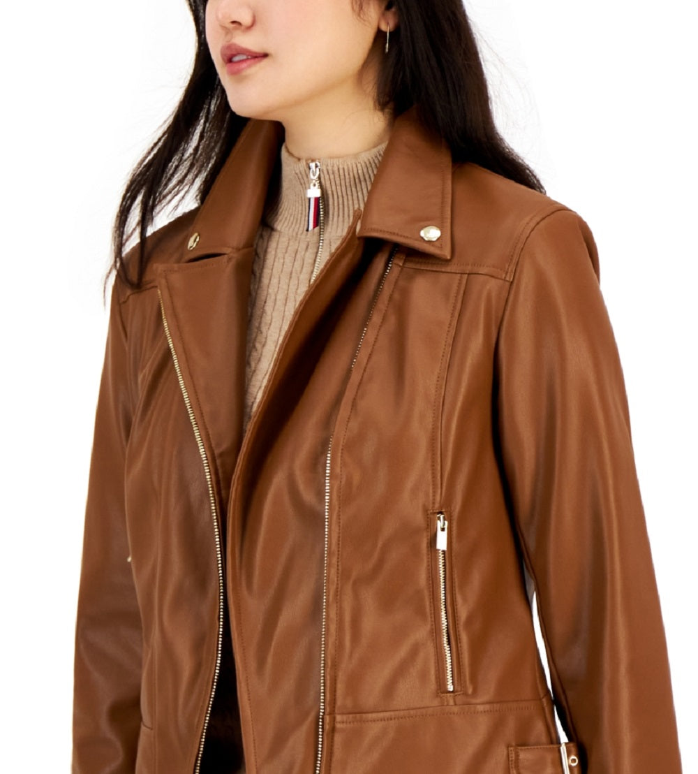 Tommy Hilfiger Women's Faux Leather Moto Jacket Brown Size Medium