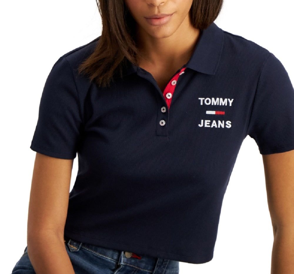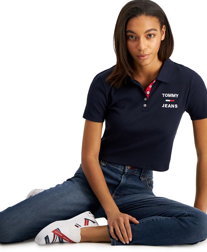 Stay classic and collegiate-chic in this short-sleeve polo by Tommy Jeans. A chest logo finishes the look. | Fold-collar; button closures| Logo text at chest| Cotton/polyester/spandex| Machine washable| Imported