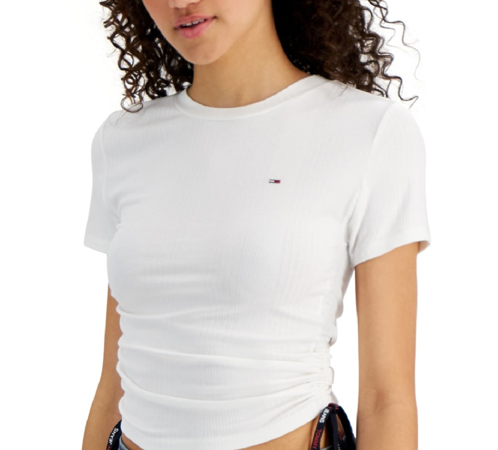 Tommy Jeans Women's Side Ruched Ribbed T-Shirt White Size Small