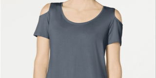JM Collection Women's Grey Cold Shoulder T-Shirt Size Small