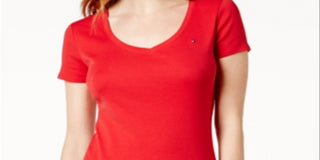 Tommy Hilfiger Women's V Neck T-Shirt Red Size Medium
