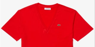 Lacoste Women's Relaxed Fit Solid Cotton Jersey V Neck T-Shirt Red Size 38