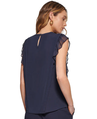 Tommy Hilfiger Women's Ruffled Sleeveless Blouse Blue Size Small