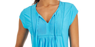Tommy Hilfiger Women's Pintucked Ladder Trip Top Blue Size Small