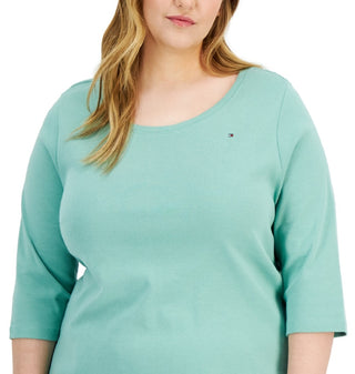 Tommy Hilfiger Women's Cotton 3/4 Sleeve T-Shirt Green Size 1X