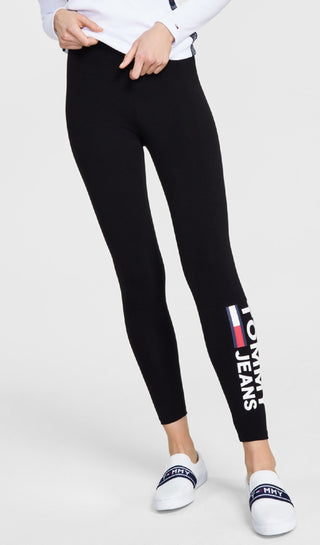 Tommy Jeans Women's Side Logo Print Leggings Black Size Medium