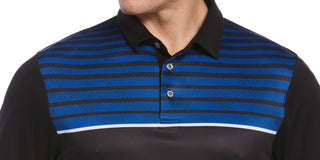 PGA Tour Men's Athletic Fit Geo Stripe Print Performance Golf Polo Shirt Black Size Small