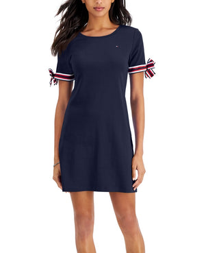 Tommy Hilfiger Women's Tie Sleeve Scoop Neck Dress Blue Size Medium