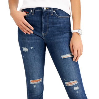 Tommy Jeans Women's Ripped Skinny Ankle Jeans Blue Size 27