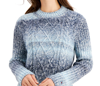 Tommy Hilfiger Women's Cable Knit Ombre Crewneck Sweater Blue Size Medium