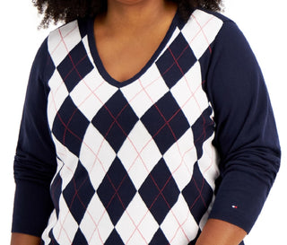 Tommy Hilfiger Women's Cotton Argyle Sweater Blue Size 0X