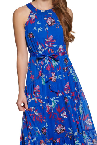 Calvin Klein Women's Tiered Belted Dress Blue Size 12