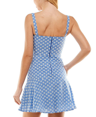 City Studios Junior's Floral Embroidered Fit & Flare Dress Blue Size 1