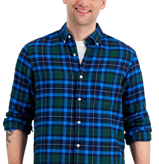 Club Room Men's Regular Fit Plaid Flannel Shirt Blue Size Large
