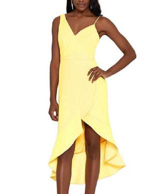 XSCAPE Women's Ruffled High Low Midi Sheath Dress Yellow Size 6