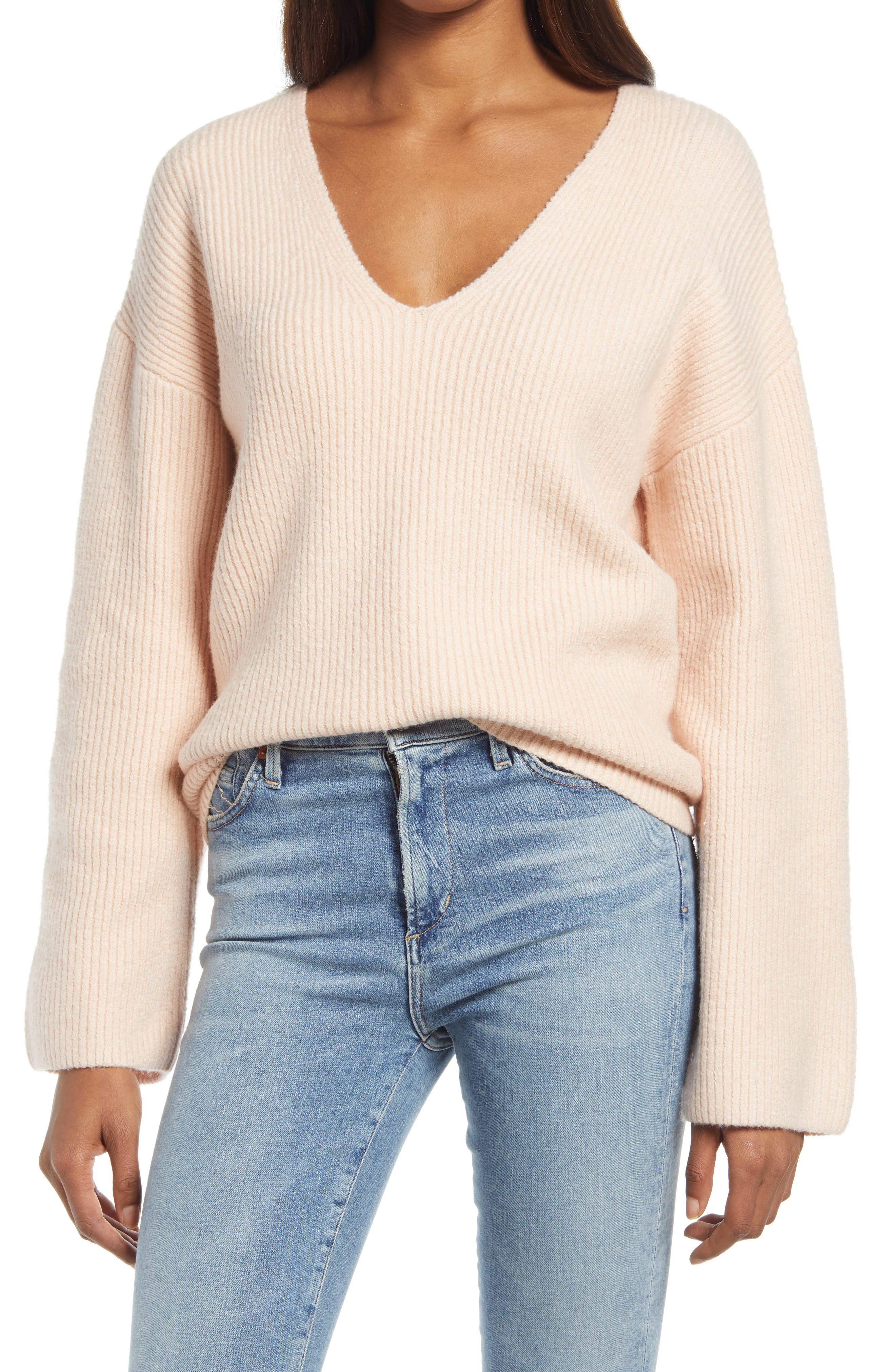 Women's Pink Rib Stitch V-Neck Sweater - Size Small
