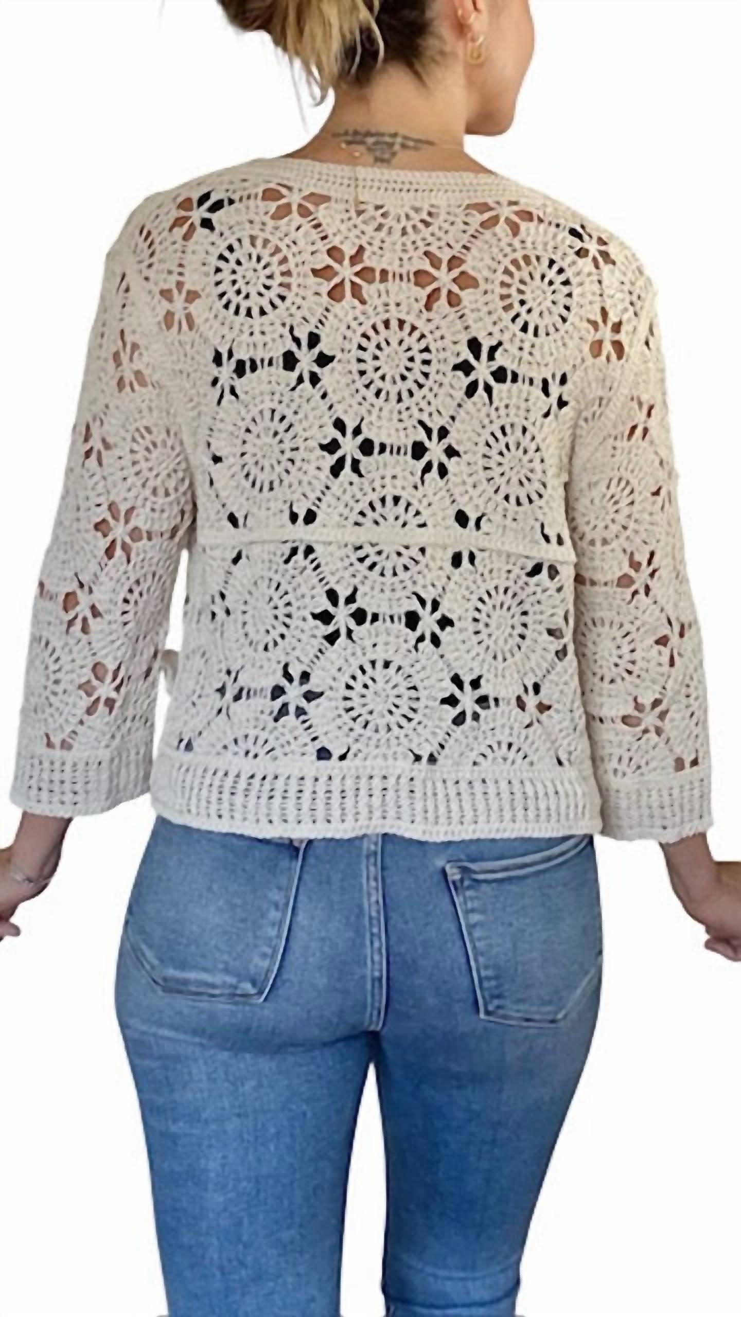 Infuse your wardrobe with boho chic flair with the Beige Crochet Button Down Cardigan by Brand Bazar. Featuring long sleeves and a charming v-neck, this textured piece is crafted from 100% cotton, offering a soft touch that's perfect for layering. Made in Italy, it boasts an intricate crochet design with floral details, adding a playful twist to any ensemble. Closure: Button closure. Care instructions include hand washing, hanging to dry, and ironing on low heat. This cardigan is available in one size that fits most.