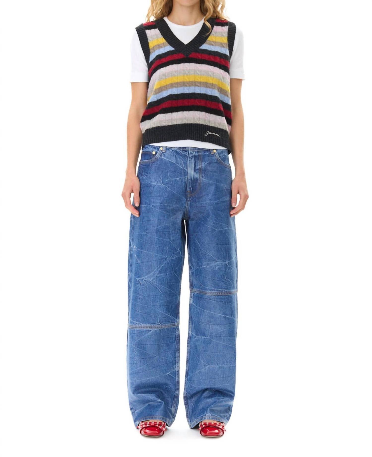 That extra layering piece you didn't know you needed! Elevate your wardrobe with the GANNI Logo Wool Mix Vest, a vibrant multicolour piece designed for modern women. This sleeveless vest features a stylish stripe pattern and a subtle logo detail on the front, perfect for adding a chic touch to any look. Crafted from high-quality wool, it offers a pull-on closure for easy wear and is ideal for travel and workwear occasions. Care for this V-neck vest with machine washing and tumble drying to maintain its fresh appeal.