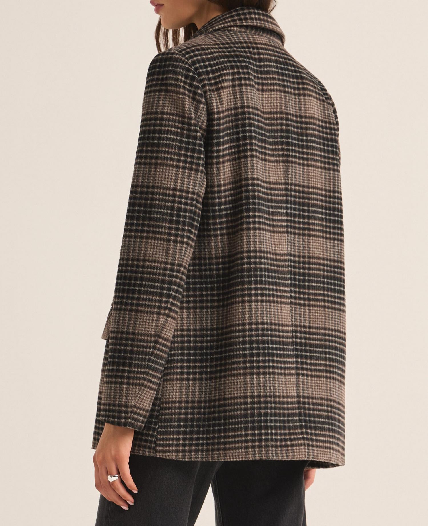 An elevated version of your favorite classic blazer. This relaxed long sleeve blazer is crafted from a durable blend of 80% Polyester, 10% Wool, and 10% other fibers, showcasing a sophisticated plaid pattern in a classic collared neckline. Expertly made in a company-owned factory under fair working conditions in China, the jacket features a button front closure and practical flap pockets. Lay flat to dry.