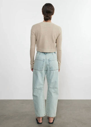 Enza Costa - Linen Open Knit Cropped V Neck Cardigan